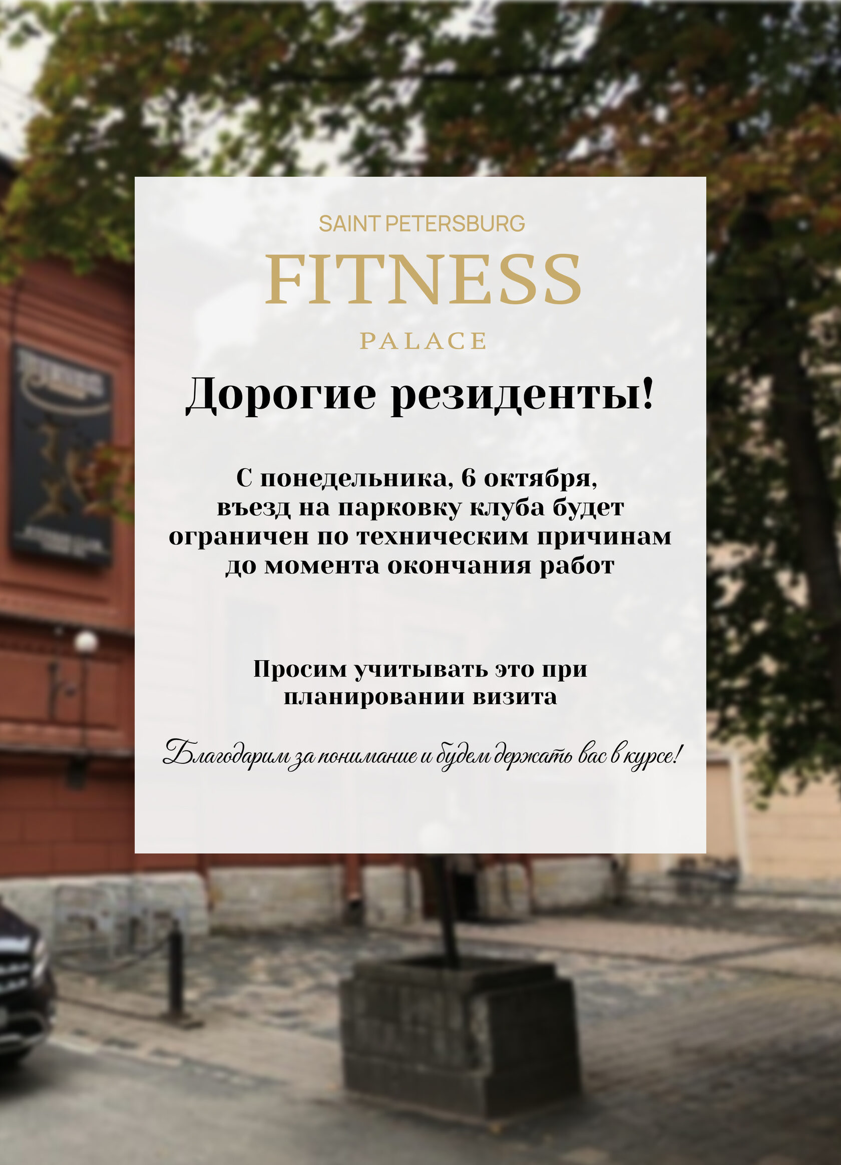 Спасибо за понимание и до встречи в Fitness Palace!